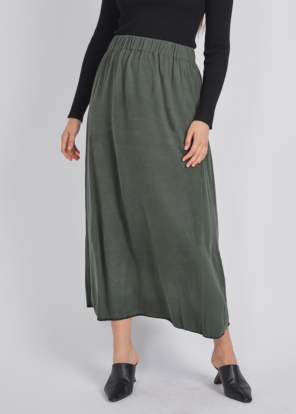Classic Green Skirt with Black Stitch
